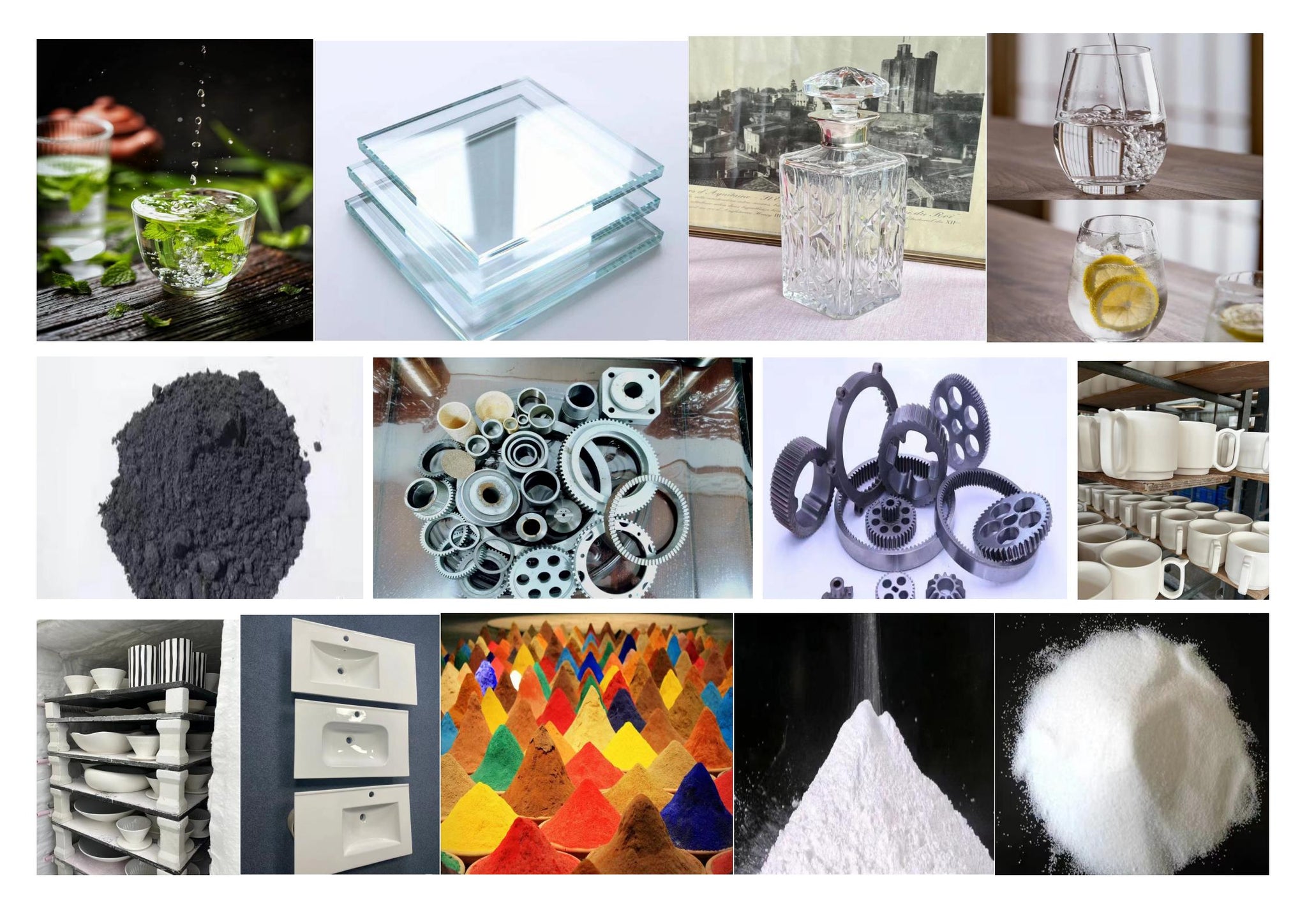 Molding materials, molecular sieves, proppants, dental materials, ceramic tools, abrasive materials, oxide ceramics, grinding balls, ferrite, etc.
